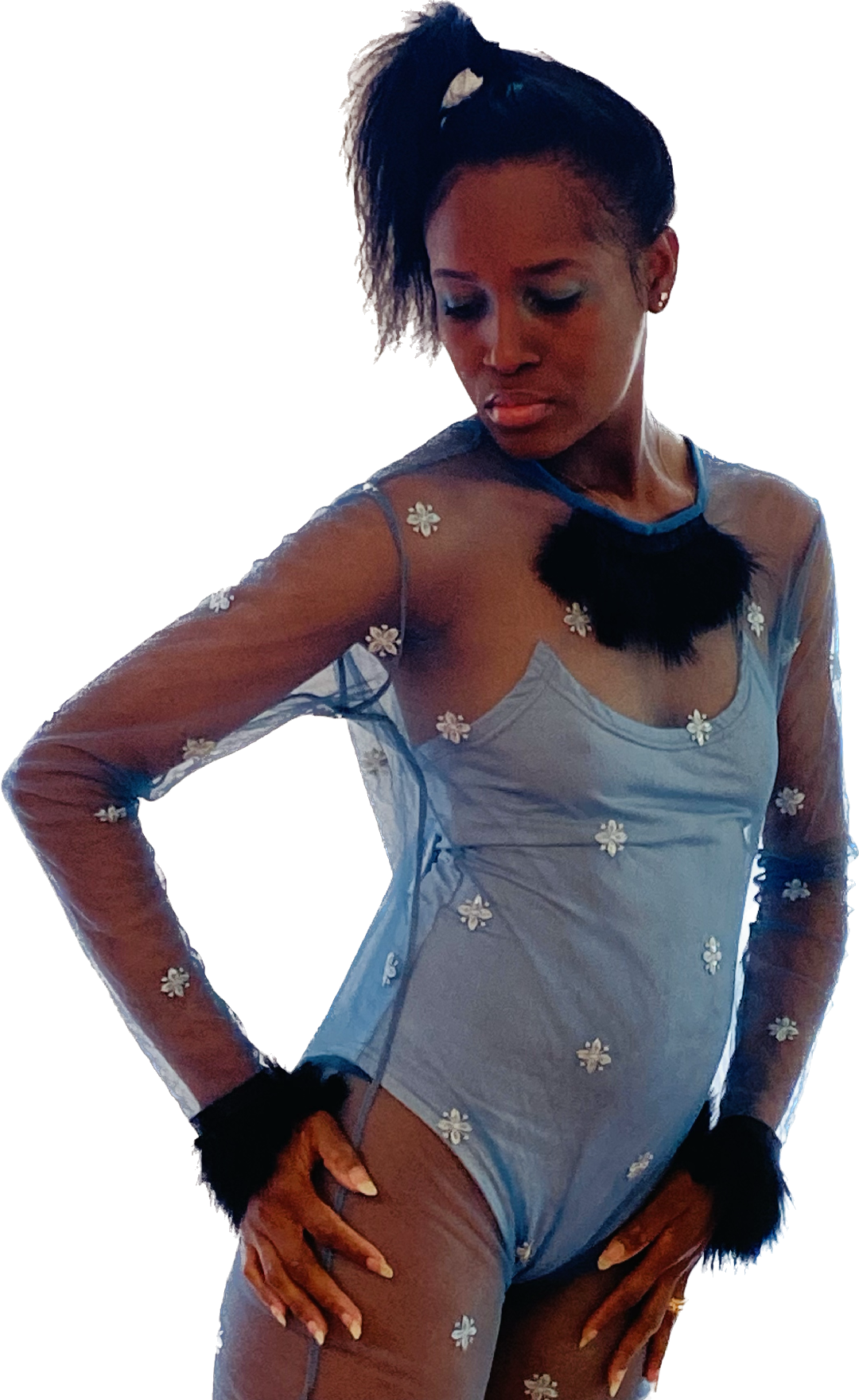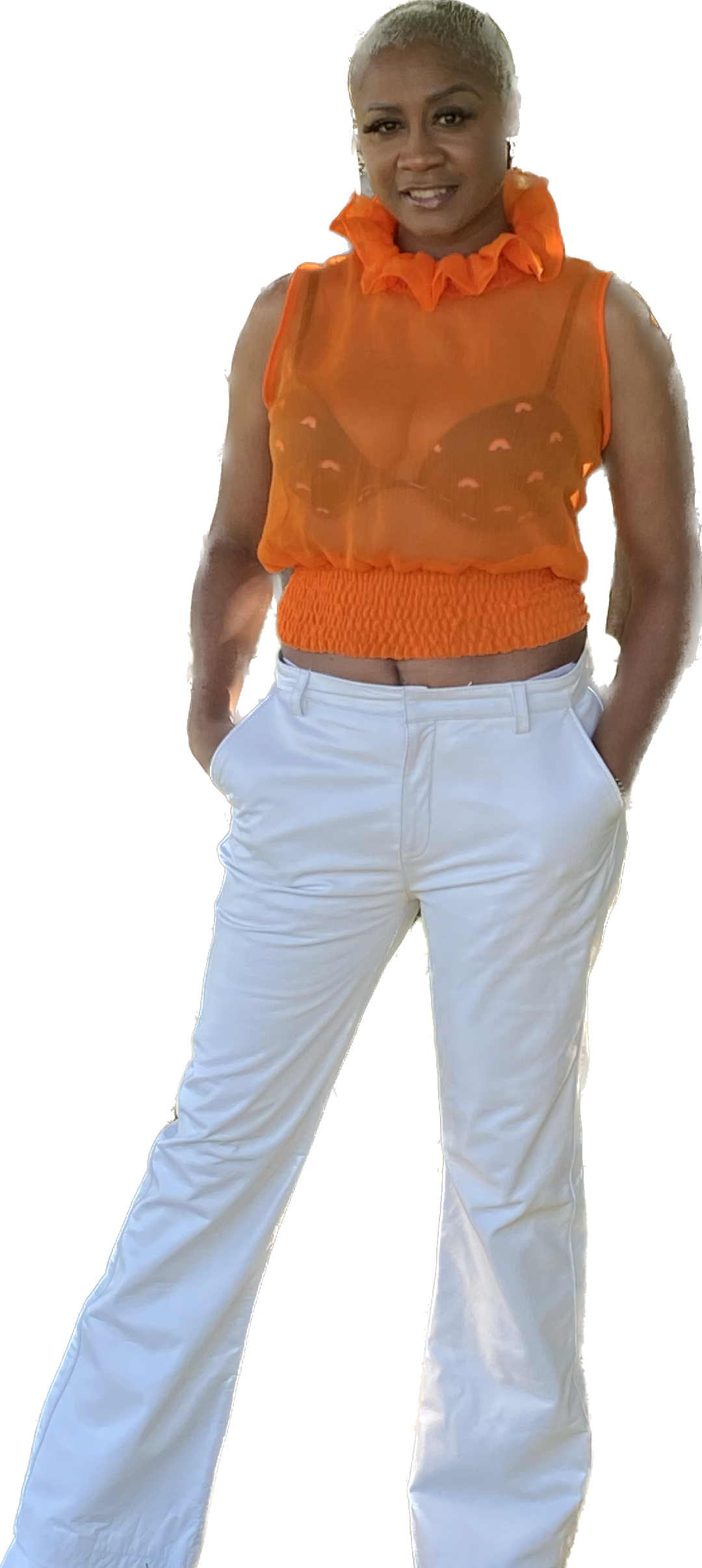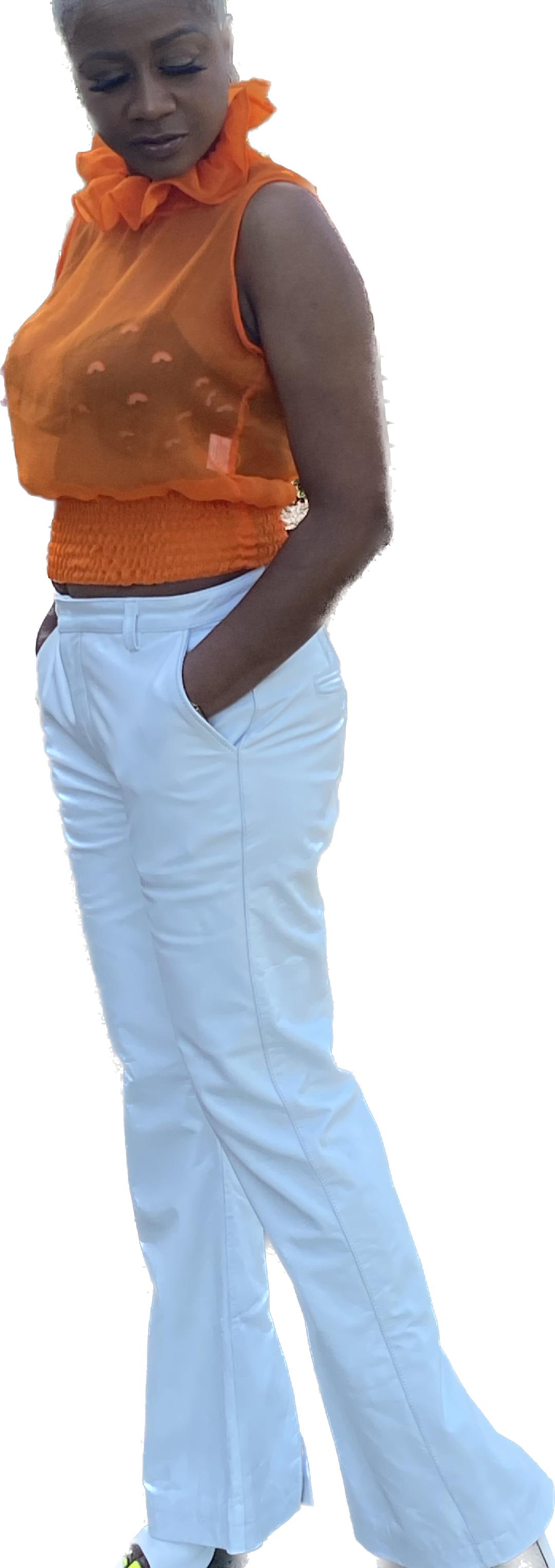 Ruffled-neck See-through You Top
